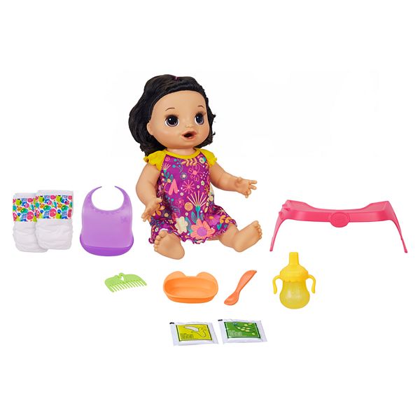 Baby Alive Tea 'N Sparkles Baby Doll, ColorChanging Tea Set, Doll Accessories, Drinks and Wets, Blonde Hair Toy for Kids Ages 3 and Up 40 out of 5 stars 2Baby Alive Sunshine Love Doll, Tiger Towel, 10Inch Waterplay Baby Doll, Sunglasses, Black Hair Toy for Kids 3 and Up $1499 MSRP More5 Baby Alive Pretty in Pigtails Baby Doll Brown Hair;